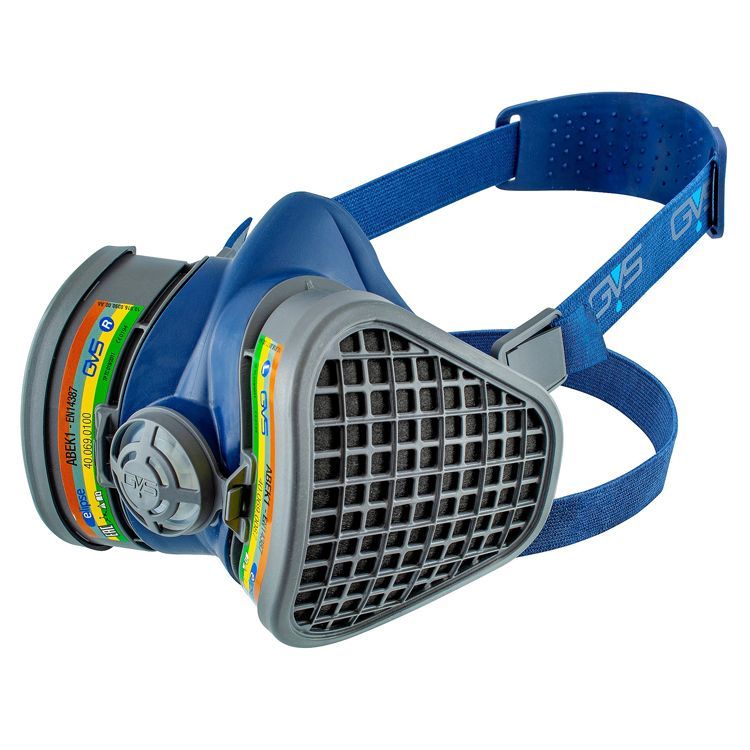 Противогазовая полумаска Elipse в комплекте со сменными фильтрами ABEK1 для защиты от органических (с температурой кипения выше 65 °С) и неорганических газов и паров, кислых газов и паров, аммиака и его производных.