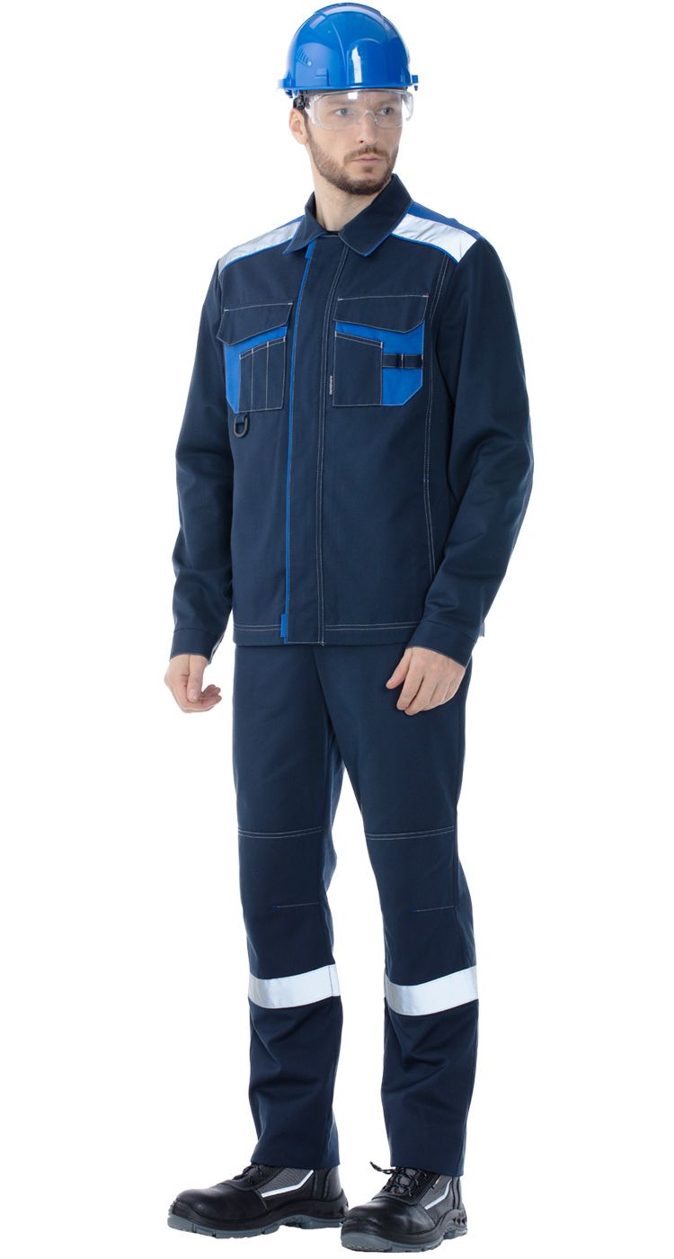 Костюм, из облегченной ткани с высоким содержанием хлопка, состоит из куртки и брюк.