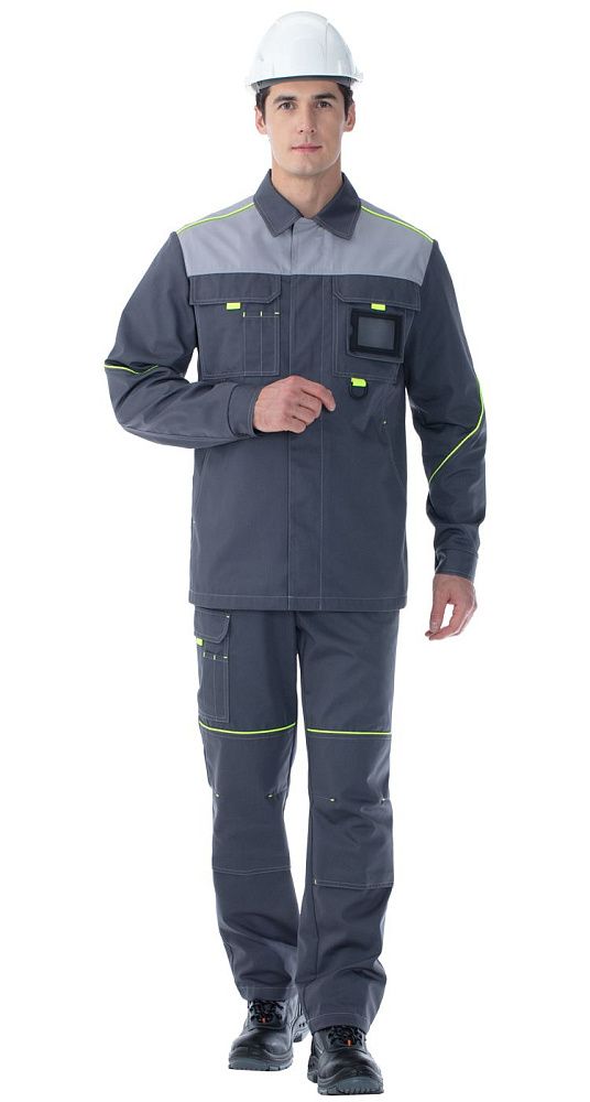 Куртка мужская рабочая удлиненная, прямого силуэта с супатной застежкой на 4 петли и пуговицы, и на липучку у горловины. Многофункциональные нагрудные карманы с клапанами и нижние вместительные карманы.